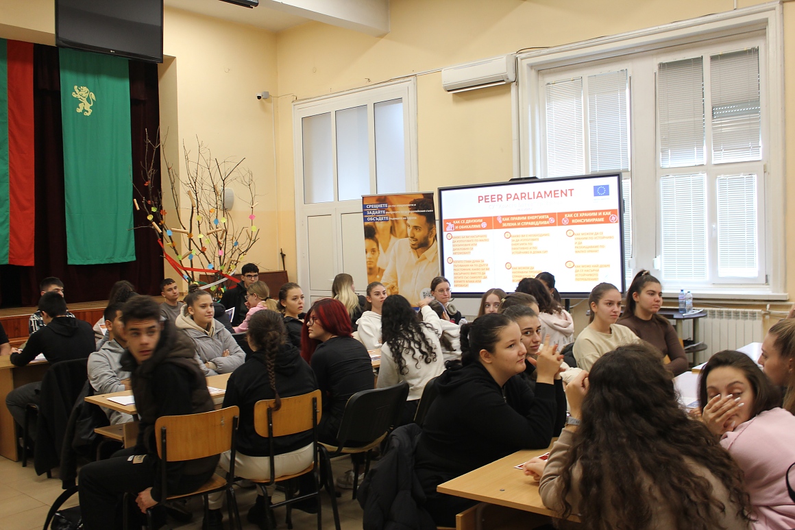 ЕВРОПА ДИРЕКТНО Враца проведе заключителната част на Европейската инициатива Peer Parliament в Средно училище „Христо Ботев“ град Враца. На 6-ти ноември 2025 г., учениците от десетите класове дискутираха на три теми в областта на климата, споделяйки своето виждане по дадените въпроси и давайки нови възможни решения на съществуващите проблеми. Десетокласниците демонстрираха сериозна подготовка по всяка от темите и инициативност по време на дискусията.
